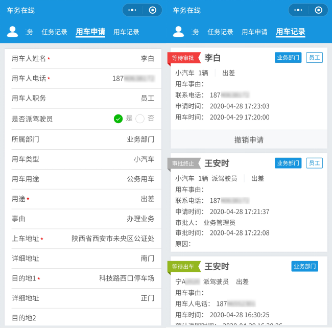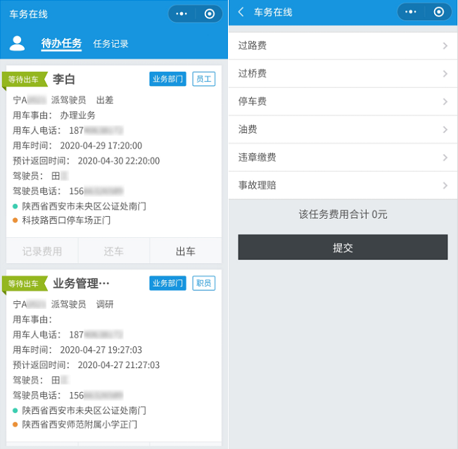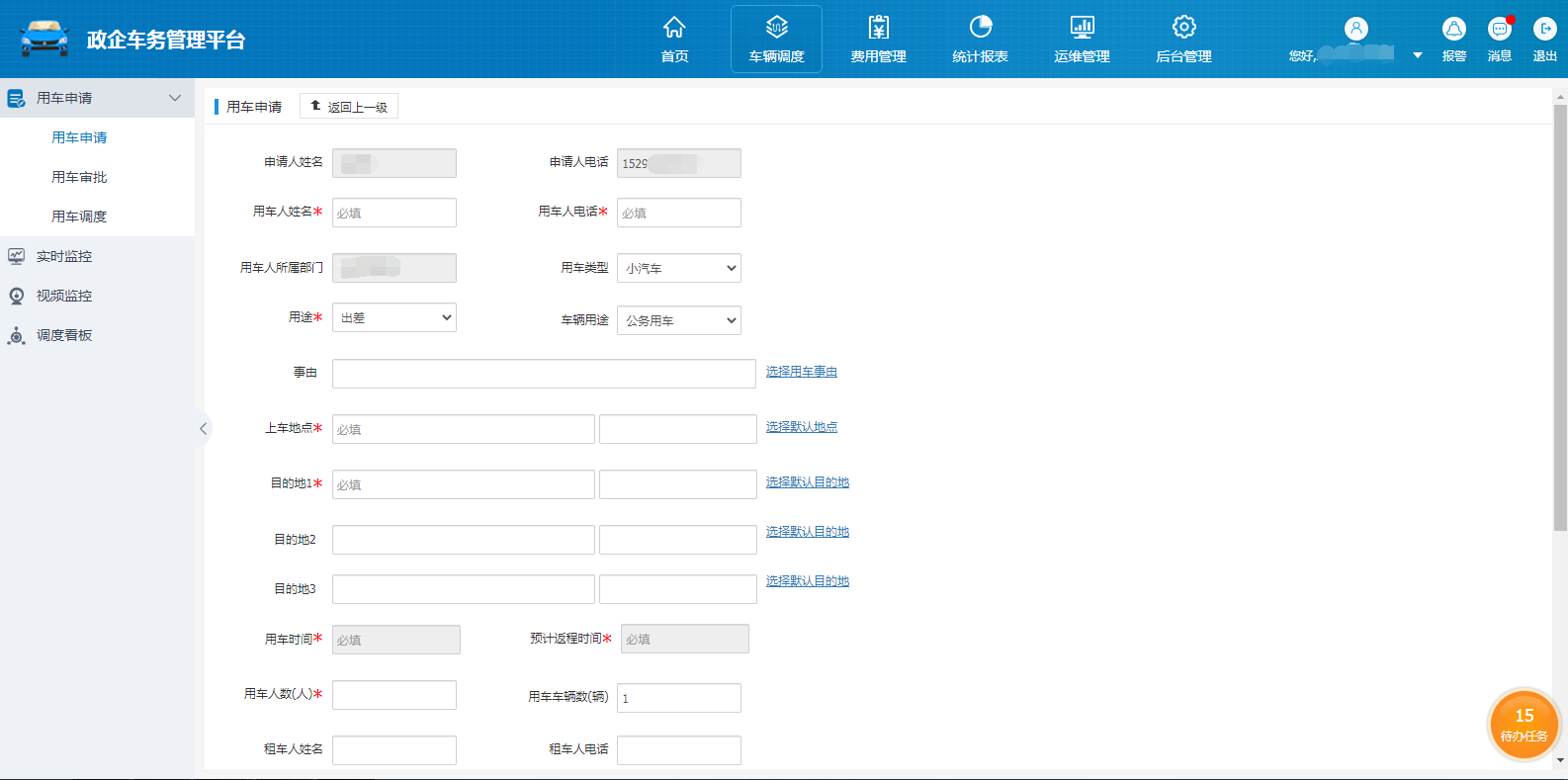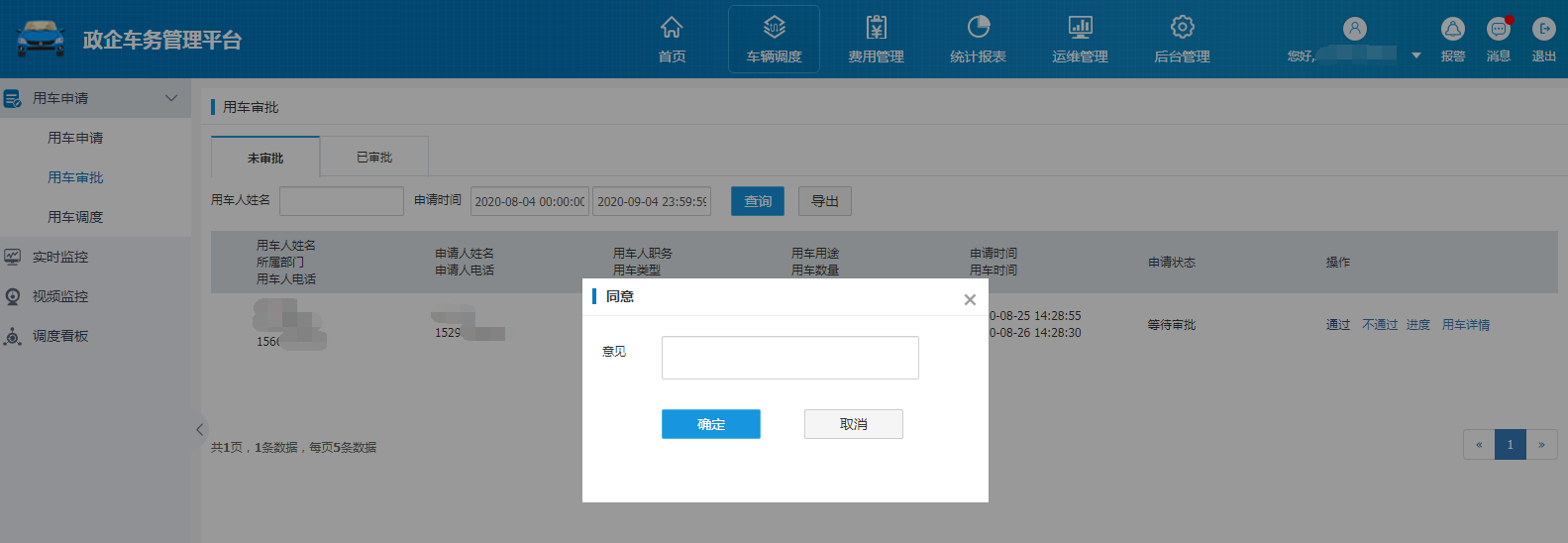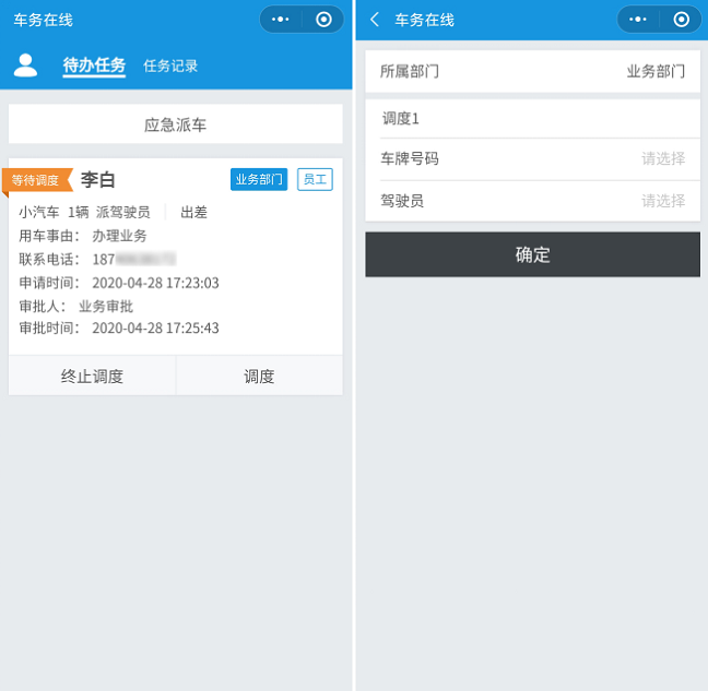 无需经过申请、审批流程,调度人可直接根据用车紧急情况调度车辆和驾驶员