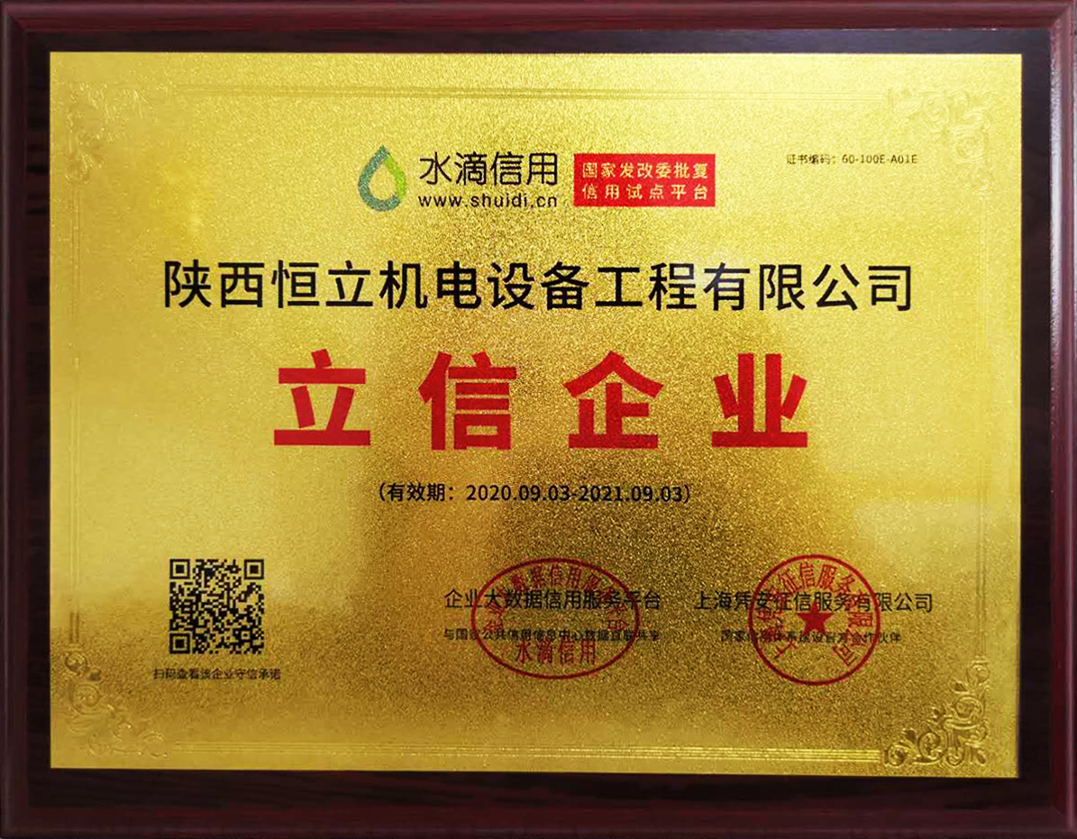恭贺恒立设备荣获水滴信用“立信企业”称号