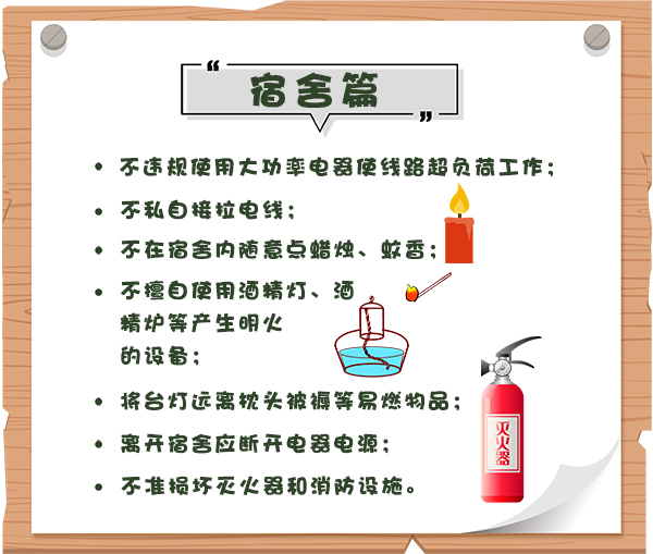 3.火灾逃生时,用湿毛巾捂住口鼻,迅速寻找安全通道离开。若无法从宿舍逃出,应关紧大门,用湿毛巾、湿布等塞住门缝,在室内等待求援。