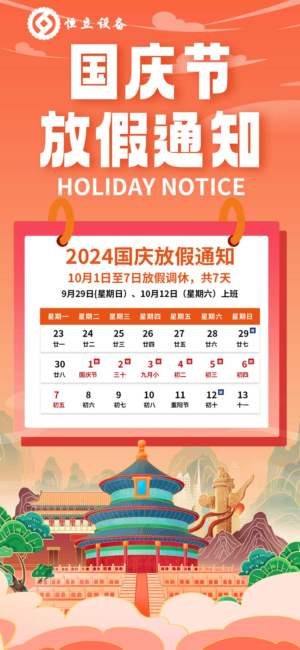 国庆节公司放假安排如下