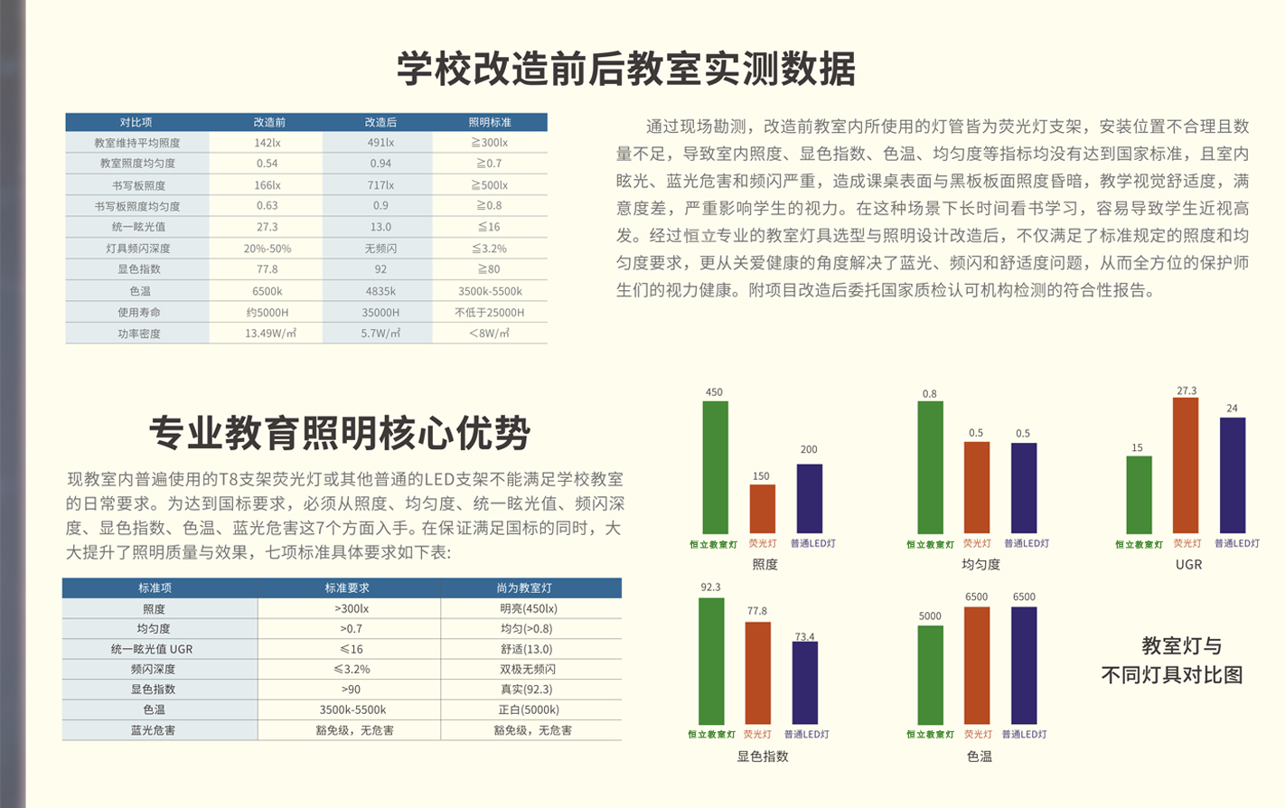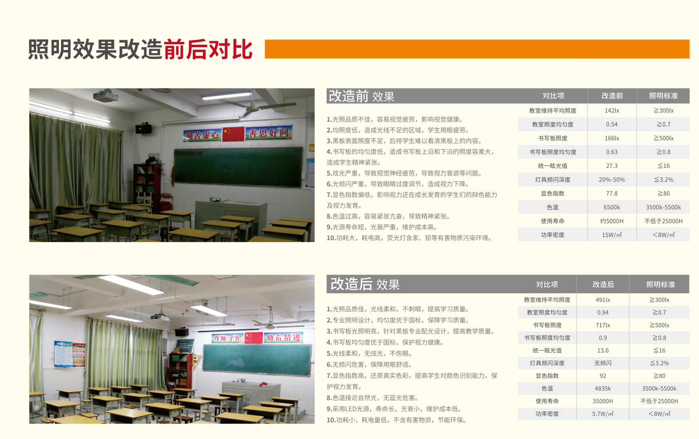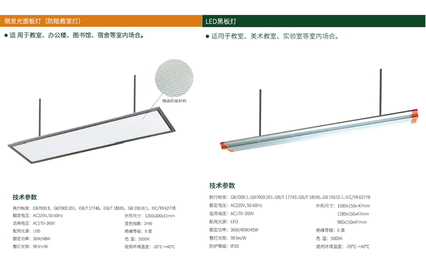教室照明使用的灯具肯定是要选具有良好的护眼功能的灯具,给教室提供健康光环境,具有照度优、无眩光、无光频闪危害、显色指数高、色温适中、无蓝色危害等优点,做到真正保护学生视力。